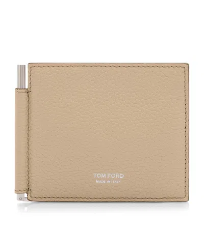 Tom Ford Leather T-line Money Clip Wallet In Beige