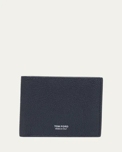 Tom Ford Men's Grained Leather T Line Bifold Wallet In Denim Blue