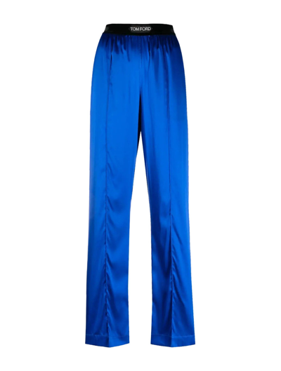 Tom Ford Stretch Silk Satin Pj Pants In Cobalt Blue