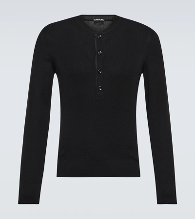 TOM FORD Silk And Cotton Henley Shirt In Blk Sld