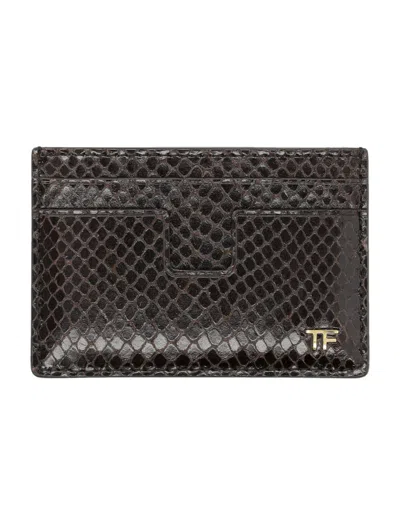 Tom Ford Card Wallet Phyton Print In Brown