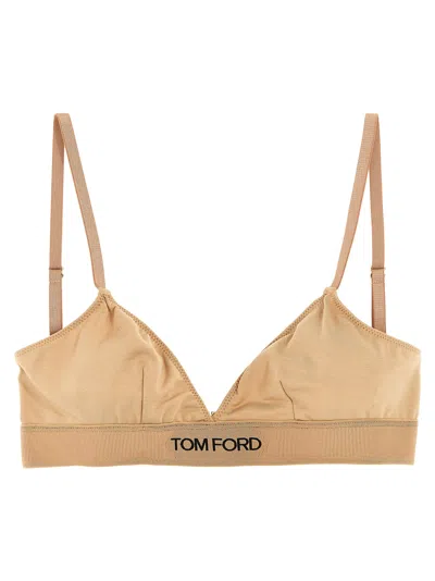 Modal jersey bra, triangle model, adjustable shoulder straps, elastic with contrast jacquard logo on the hem, back hook closure.. Colour. : Beige. Composition. : 97% modal 3% elastane. Country Of Manufacture. : Burundi. Dimension. : true to size fit. MPN. : BRJ009JEX166BY110. .