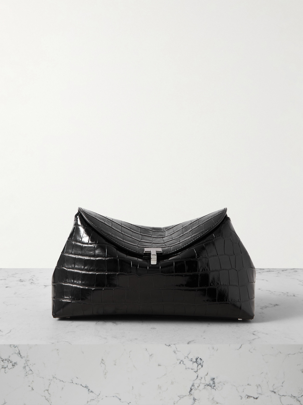 T-LOCK CROC-EFFECT LEATHER CLUTCH