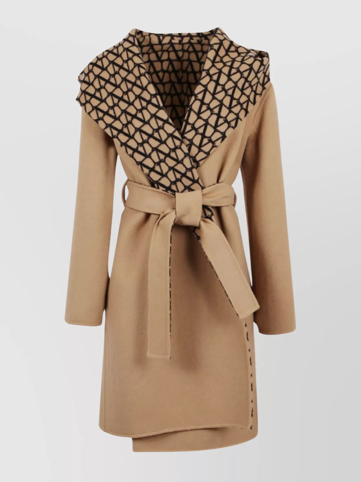 Reversible wool coat BY VALENTINO GARAVANI. Hood; long sleeves; belt loops and matching belt. Internal Toile Iconographe print detail.