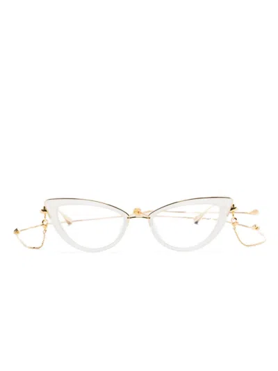 white/gold-tone titanium cat-eye frame clear lenses sculpted arms with curved tips These glasses come with a protective case. All glasses from FARFETCH are sold as non-prescription frames.