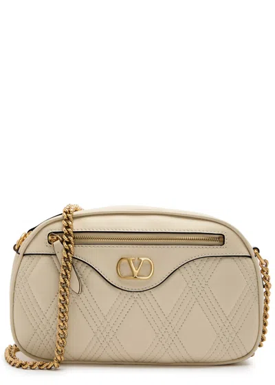 Valentino Garavani Quiltie 67 Leather Camera Bag In Off White