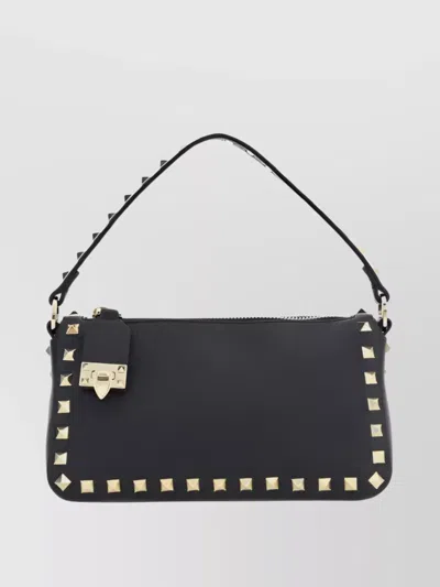 Rectangular shape | Calfskin Small Rockstud Shoulder Bag | Pebbled texture | Adjustable and removable flat shoulder strap | All-over piping | Iconic Rockstud studs | Rigid top handle | Iconic brand monogram stamped on the back | Hook-and-eye closure | Top zipper closure