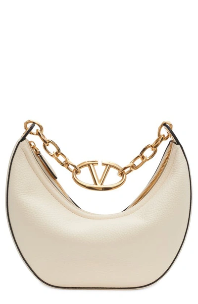 Valentino Garavani Small Vlogo Moon Hobo Bag With Chain In Ivory