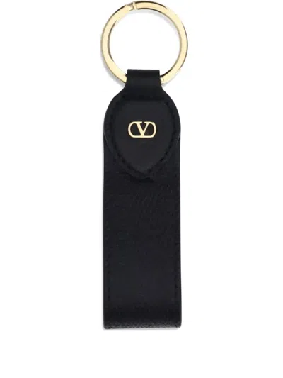 Valentino Garavani Logo-signature Leather Keyring In Black