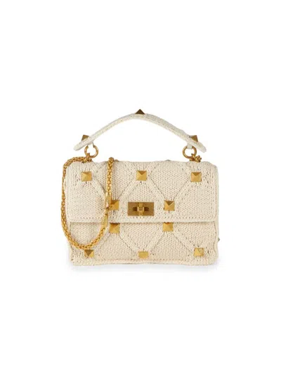 Valentino Garavani Women's Large Rockstud Knit Satchel In Ecru