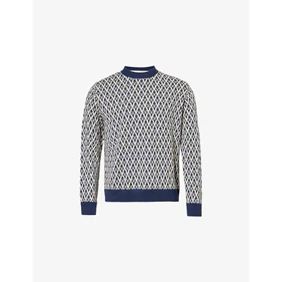 MENS TOUTE LA V NAVY/CREMA MONOGRAM-PRINT CREW-NECK RELAXED-FIT WOOL JUMPER