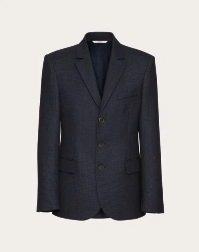 VALENTINO Single-breasted Wool Jacket In Navy/black