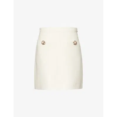 Valentino Womens Crepe Two-welt-pockets Wool And Silk-blend Mini Skirt Avorio
