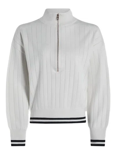 Aliyah Half-zip Knit Pullover In White Blue Nights