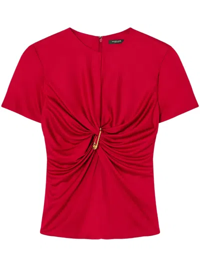 VERSACE Safety Pin Gathered Viscose Top In Red