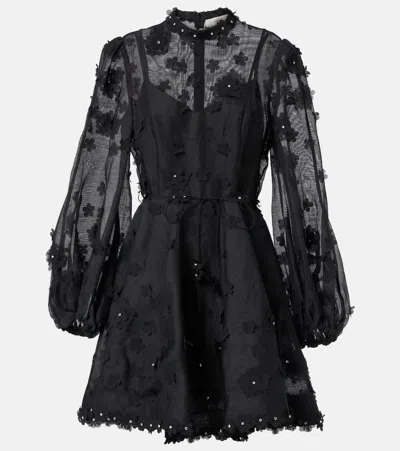 ZIMMERMANN Matchmaker Lift Off Linen And Silk Minidress In Black