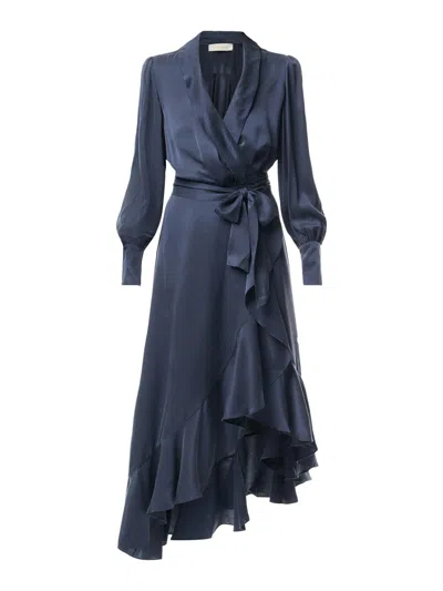 Zimmermann Silk Wrap Dress In Blue